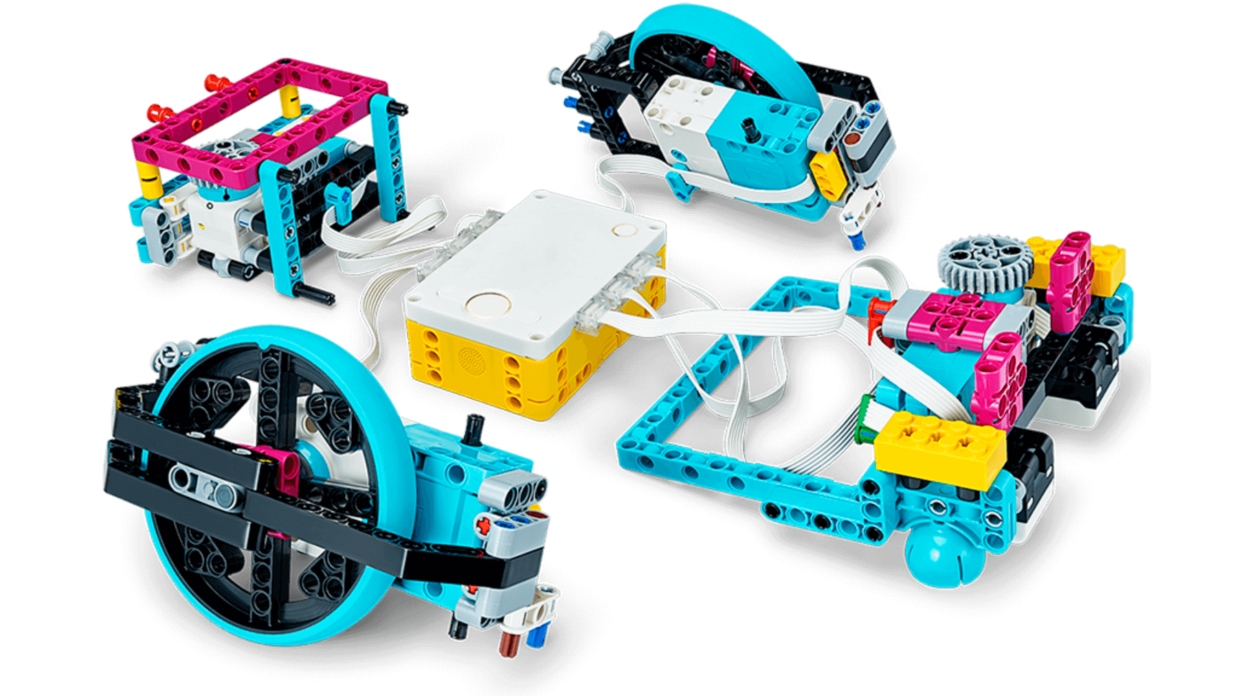 Herzstück des Sets ist der Smart Hub. Er bringt sechs Ports (Anschlüsse) für Input und Output von Motoren und Sensoren mit. Das weiß-gelbe Gerät hat integrierte Lautsprecher, einen Akku und ein sechsachsiges Gyroskop, um Orientierung und Bewegung zu stabilisieren. Auf der Oberfläche befindet sich eine Matrix aus fünf mal fünf LED-Lampen, auf der beispielsweise ein Smiley gezeigt werden kann. Der Smart Hub soll sich über Bluetooth und USB-Kabel mit einem Endgerät verbinden können. Das Kabel dient auch dazu, den Akku des Hubs aufzuladen.